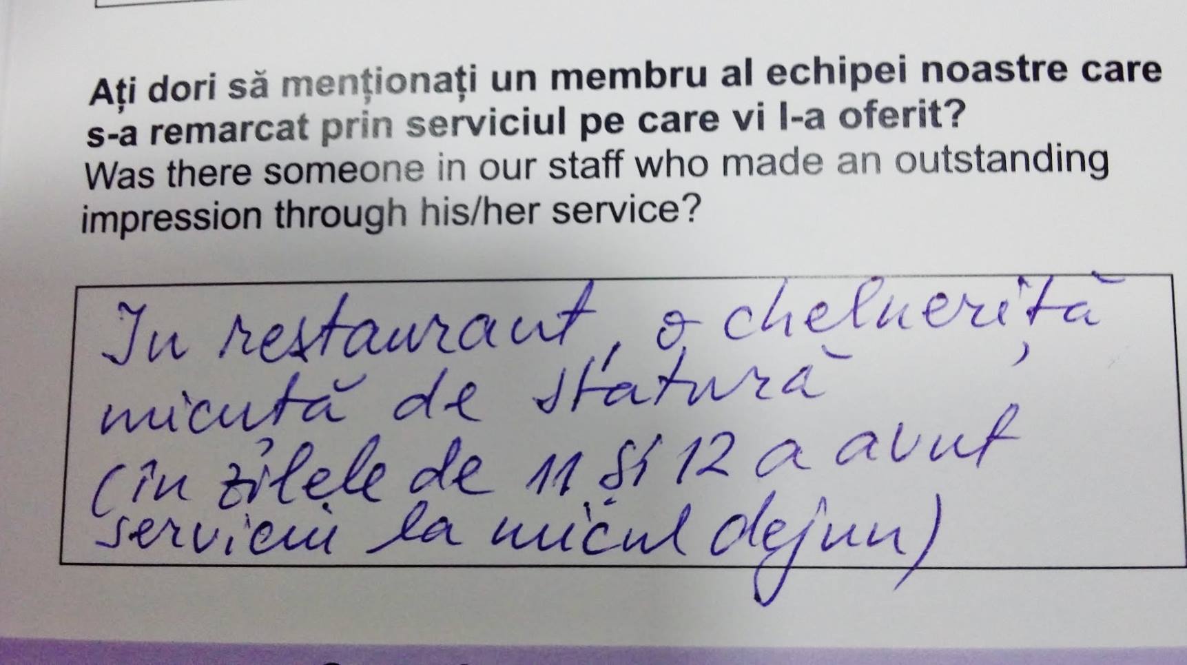 Cu foarte mare plăcere pot spune că m-am simțit foarte bine la voi. Sunteti o echipă de oameni fantastici si mi-ati facut sederea foarte placuta.