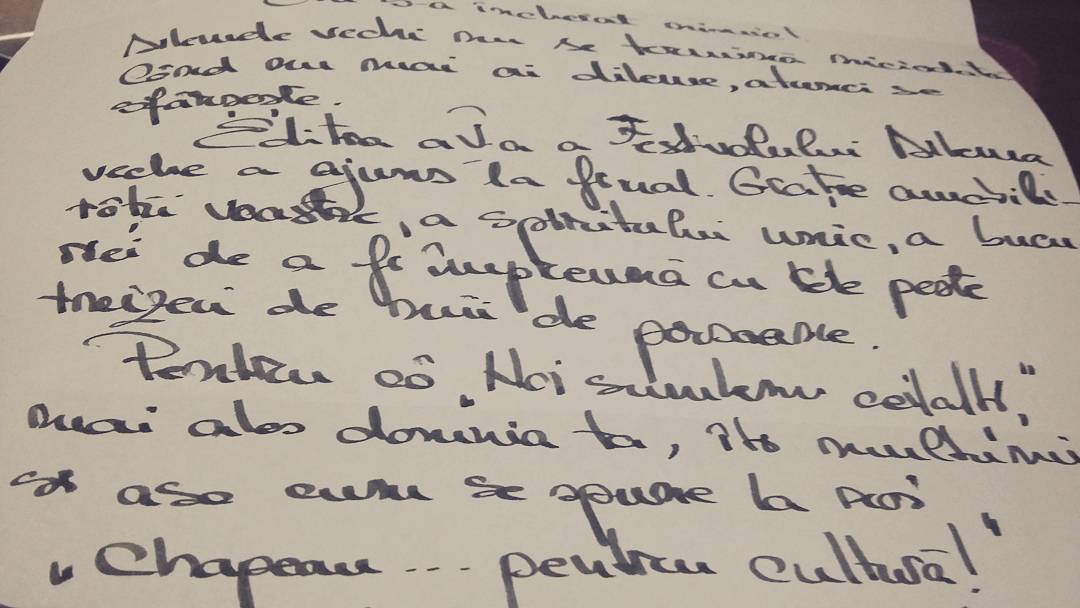 Multumesc pentru ospitalitatea cu care am fost primit si care este marcata de acea calitate rara in ziua de azi, numita "suflet românesc".