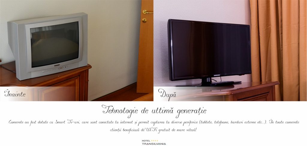 În anul 2013, clădirea emblematică a fost achiziționată de Florea Grup, care tot atunci a demarat un amplu proces intens de renovare, în cadrul căruia au fost refăcute complet dotările și a fost regândit întreg conceptul de design interior. Hotelul a fost modernizat în stil contemporan, în care s-a pus mult accent pe calitatea materialelor folosite și pe detalii ale design-ului care dau un caracter aparte spațiilor. În camere se remarcă nota de contrast a culorilor, nuanța intensă de roșu carmin ce rafinează și oferă personalitate cromaticii neutre a ansamblului. Tehnologia a fost o altă parte importantă a investiției, fiecare dintre camerele de 4 stele fiind dotată cu sistem persoanlizat de reglare a temperaturii, cu Smart TV, iluminare cu led-uri și încălzire cu ajutorul panourilor solare, care fac din Hotel Transilvania o construcție eco-friendly.