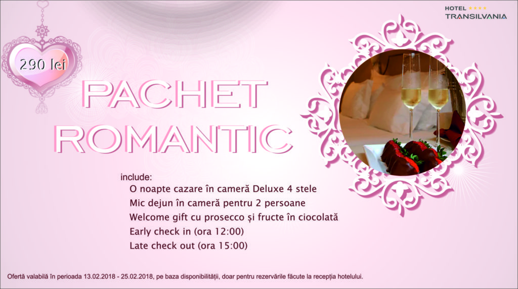 Iar dacă încă nu ți-ai rezervat camera la Hotel Transilvania, luna aceasta te primim cu o oferă specială: un pachet cu cazare în cameră deluxe de 4*, mic dejun în cameră și welcome gift cu prosecco și fructe în ciocolată, totul la 290 lei/ noapte. Iar pentru că ne dorim să petreci cât mai mult timp cu persoana iubită, ai din partea noastră early check in și late check out gratuit.